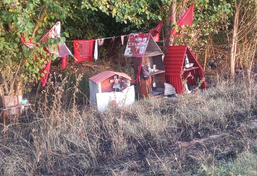 ¡Cuestión de fe! En Ruta 51 se incendio un sector de la banquina, menos el altar del Gauchito Gil
