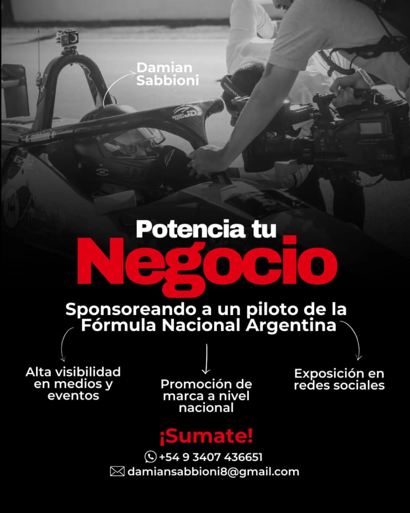 Las firmas comerciales interesadas en tener sus nombres inscriptos en el auto de Sabbioni se tienen que comunicar al teléfono 3407-436651 o vía correo electrónico a damiansabbioni8 @gmail.com. Quienes lo hagan tendrán la posibilidad de tener visibilidad nacional a la hora de las carreras, promoción en redes sociales y presencia en eventos medios y eventos.