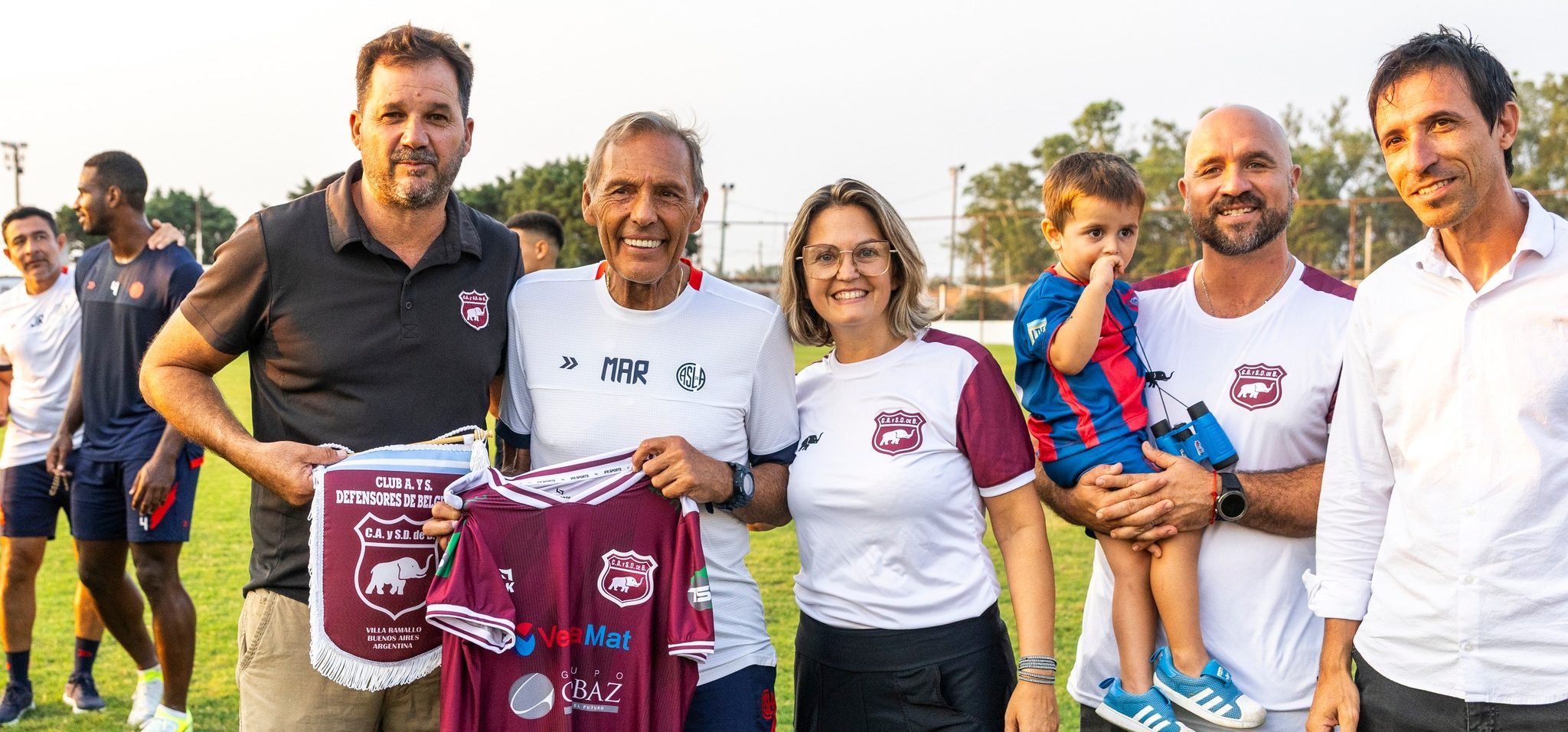 El grupo fue recibido por la presidenta de la institución, Lic. Guadalupe Poggi, quien estuvo acompañada por el vicepresidente, Dr. Sebastián Briata y el Coordinador de Deportes de la institución, Prof. Gabriel Pieralisi, y en ese marco le entregaron a Miguel Angel Russo la camiseta del club.