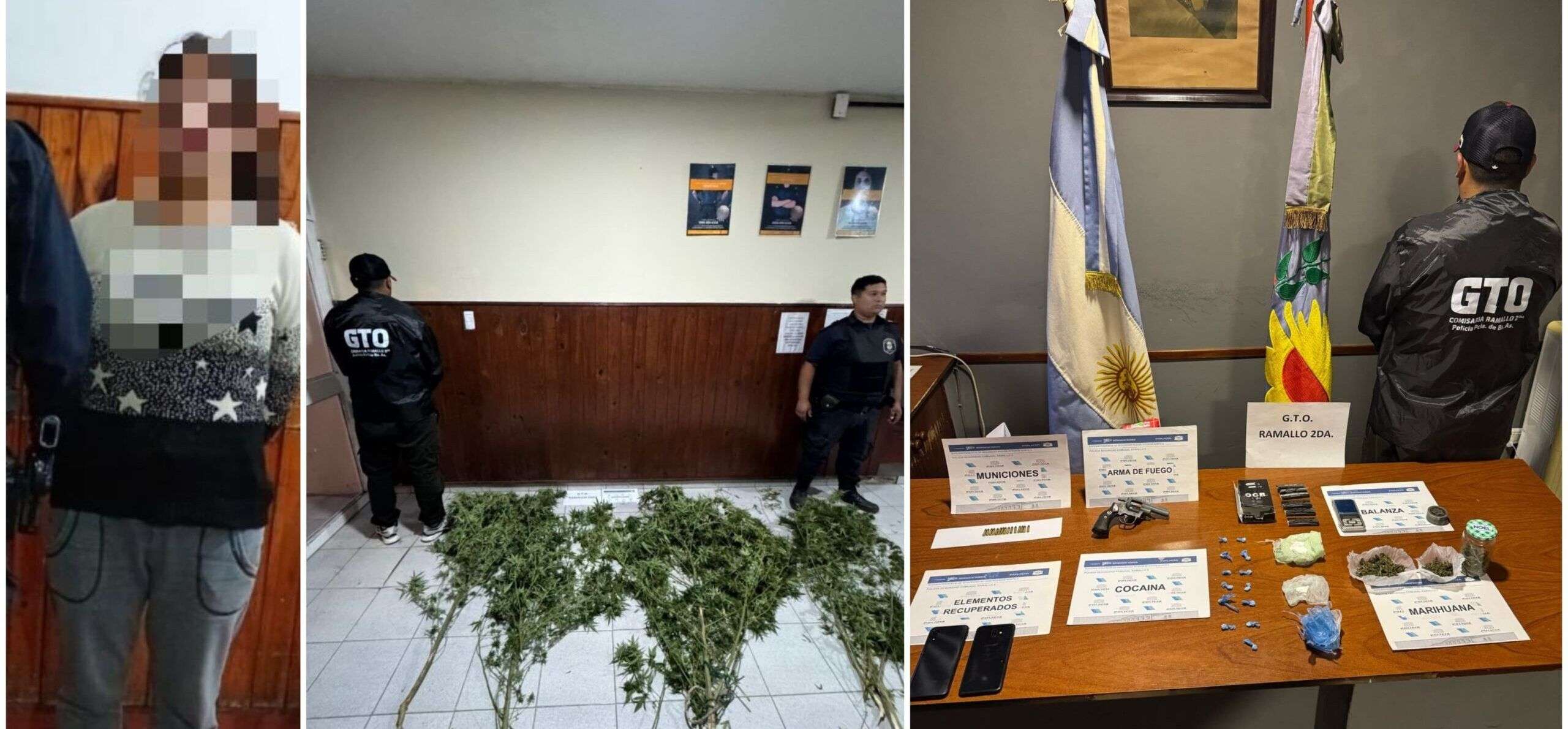 Quienes comenzaron a recabar datos y así llegaron hasta un domicilio de calle Alvear, de esta misma localidad, que dio resultado positivo al hallar parte de los elementos sustraídos en el delito antes mencionado, un revólver calibre 22, municiones, dos trozos compactos de cocaína peso total. 22,1Gr; 13 dosis de cocaína listas para comercializar; 5 cajas de papelillos; una balanza de precisión, 1 frasco de vidrio conteniendo bagullos de marihuana arrojando un peso de 10.8 Gr., dos envoltorios con bagullos de marihuana, peso total 15,2; dos plantas de marihuana de 2 metros y medio de alto, peso total 2,650 Kg, entre otros elementos considerados de importancia para la cusa, según se indicó en el informe policial.
