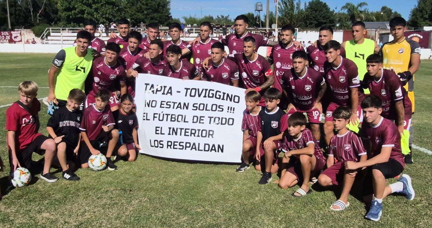 “¡¡¡Tapia – Toviggino, no están solos!!! El fútbol de todo el interior los respalda”, se podía leer en la bandera que portaron los protagonistas a la hora de la fotografía.