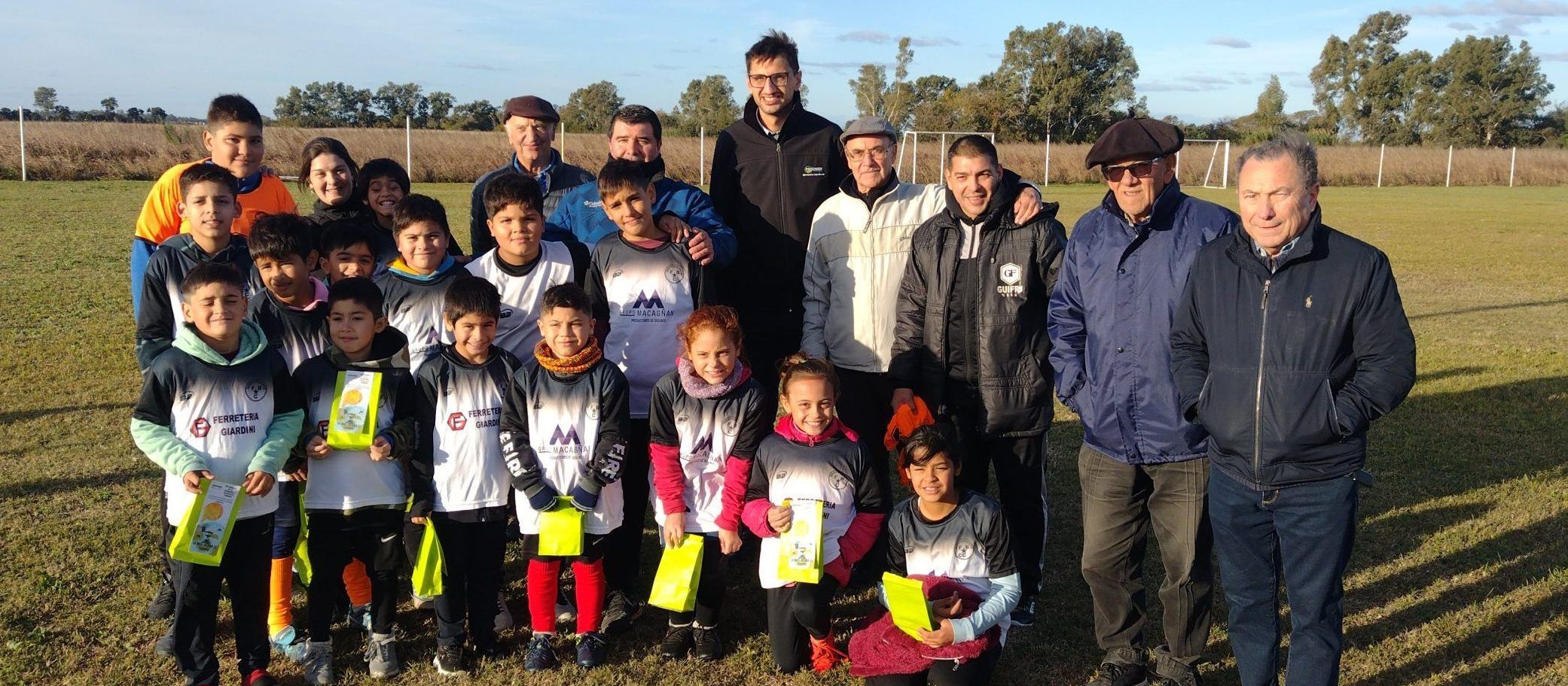 Lucas Menchise y Ada Posadas, representantes de Prochem Bio, hicieron entrega de semillas a los pequeños deportistas para que planten en sus casas.
