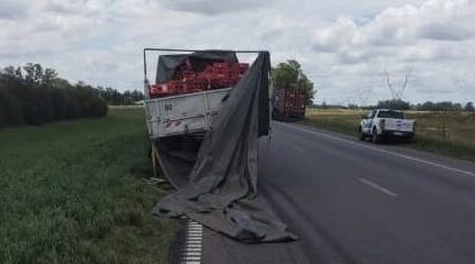 Este sábado se produjo el vuelco de un camión que trasladaba una importante carga de botellas de Coca Cola. El siniestro tuvo lugar a la altura del kilómetro 221, frente a la Estación de Servicio Puma, en sentido Buenos Aires- Rosario, y se produjo a raíz del derrape del camión de carga que transportaba botellas de la reconocida bebida que quedaron esparcidas sobre la ruta y la banquina.